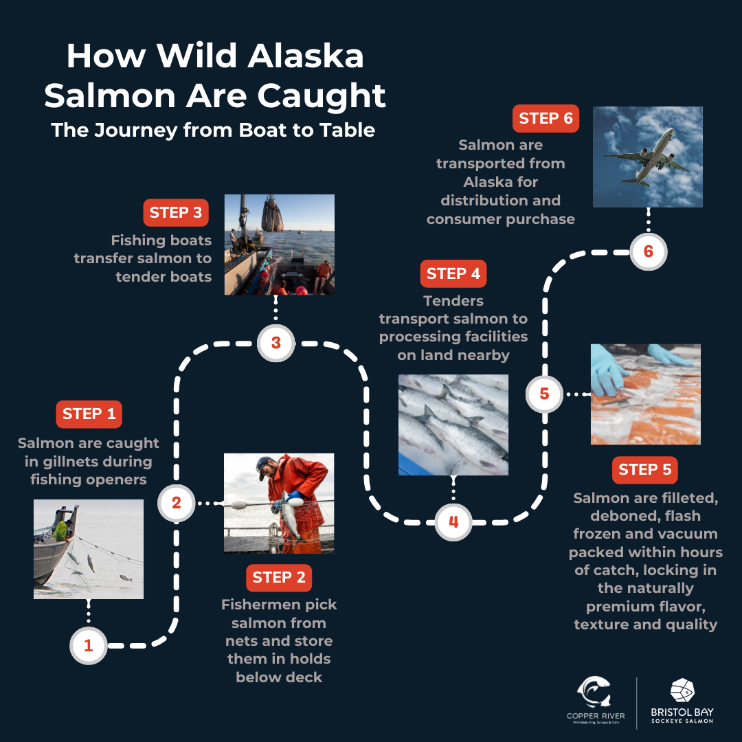 At Copper River Salmon, we take immense pride in the sustainable and time-honored practices that bring wild Alaska salmon from our pristine waters to your table. In our recent collaboration with Bristol Bay Regional Seafood Development Association (RSDA), we shared insights into "How are wild Alaska salmon caught?"—a question that speaks to the heart of what we do. From the careful techniques used by our dedicated fishermen, to the strict regulations that protect this invaluable resource, every step of the process reflects our commitment to quality, sustainability, and community. In this blog post, we’re excited to take you behind the scenes, going deeper into the methods and values that make Copper River salmon so special. Drawing from our informative carousel slides that we posted over the summer on social media , we’ll walk you through the journey of how we catch, care for, and deliver one of nature’s most remarkable treasures. Join us as we celebrate the story of wild Alaska salmon and the people who make it possible.