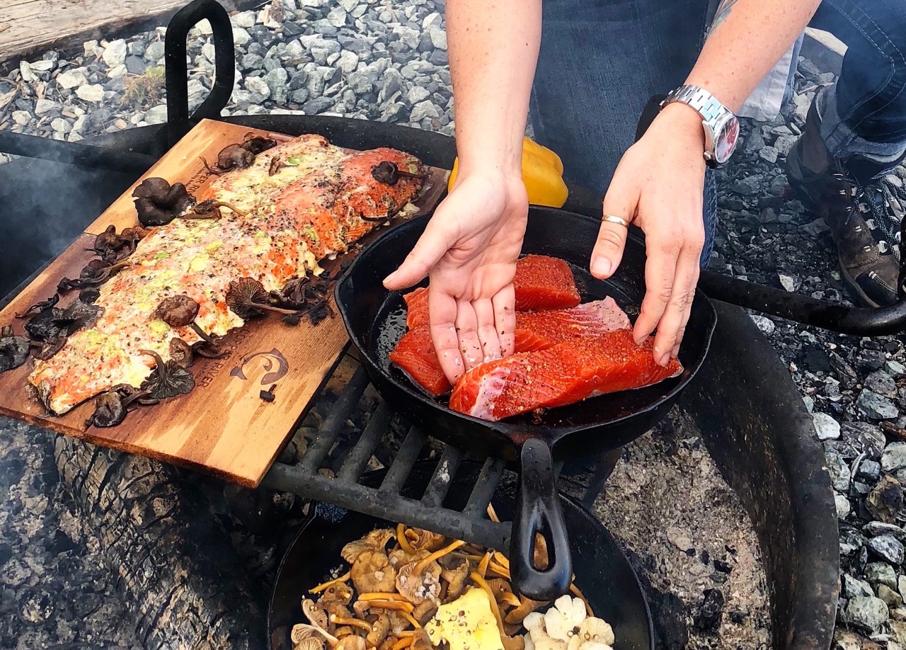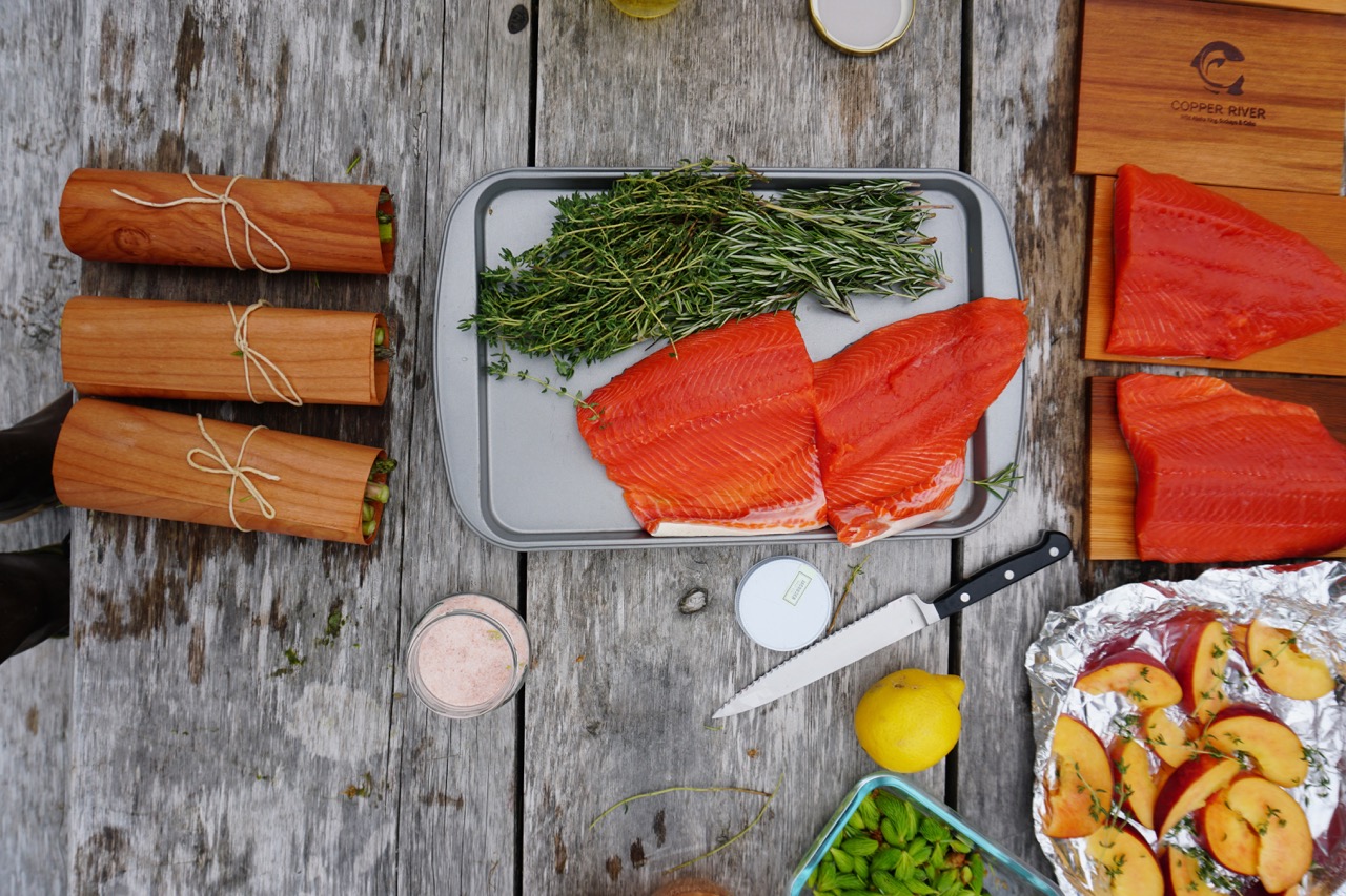For seasonings, try fresh herbs like dill and thyme, garlic, lemon, butter, and our favorite and simple go-to, salt and pepper. Cedar grilling planks can also add a nice flavor to your salmon and make cleanup a breeze. Lastly, don’t forget the plates, silverware, napkins, and your favorite beverages of choice.
