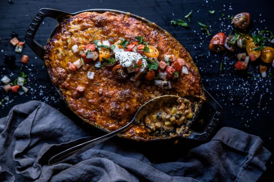 Bake for about 15 to 20 minutes or until golden brown on top. Garnish with pico, sour cream, or cilantro.