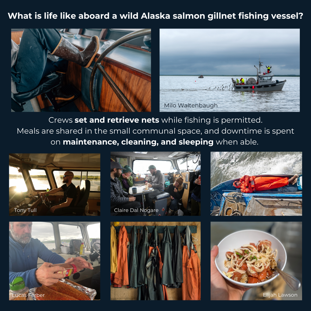 Life aboard a wild Alaska salmon gillnetting fishing vessel is a unique blend of grueling work, breathtaking scenery, and a deep connection to the rhythms of nature. From the moment the season begins, the crew is thrust into a world where long hours and physical labor are the norm. Days often start before dawn, with the crew preparing nets, checking gear, and navigating the icy waters of Alaska’s remote fishing grounds. The work is demanding—hauling in heavy nets filled with thrashing salmon, sorting the catch, and braving the unpredictable weather that can shift from calm to stormy in an instant.