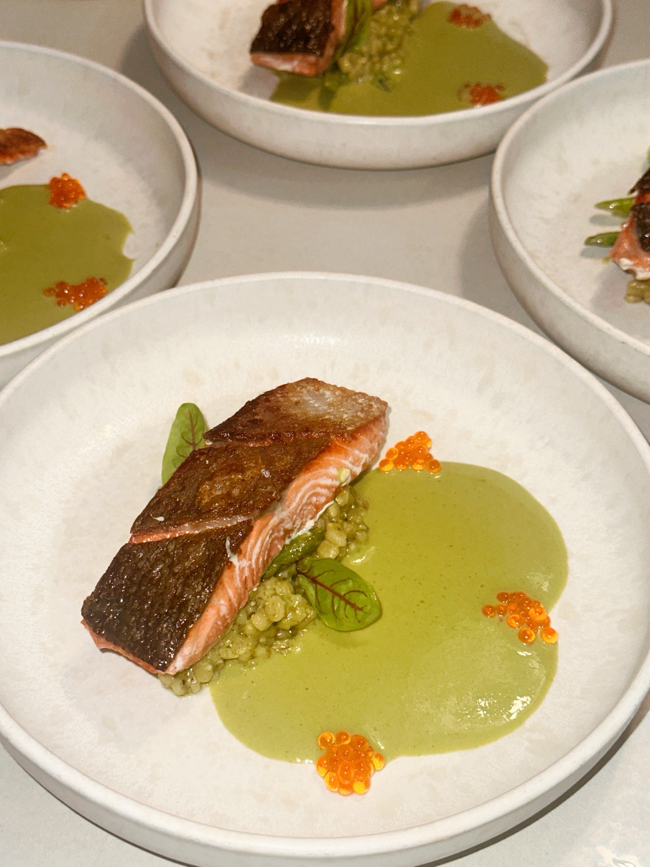 This Copper River Sockeye Salmon recipe is a delightful fusion of flavors and textures that showcases the exquisite taste of wild-caught salmon, paired with nutty barley, vibrant asparagus, and a luscious Macadamia Nut Pesto. This culinary delight is the brainchild of Kevin Guard, a talented Hawaiian chef renowned for his innovative approach to Pacific Rim cuisine. Guard, known for his private catering service and restaurant, The Guarden, brought his expertise to the forefront during the 2023 Summer Salmon Camp in Cordova, where he dazzled participants with his culinary creations and fish filleting skills.