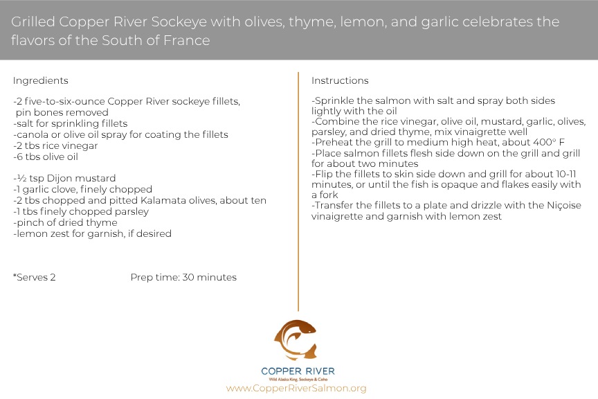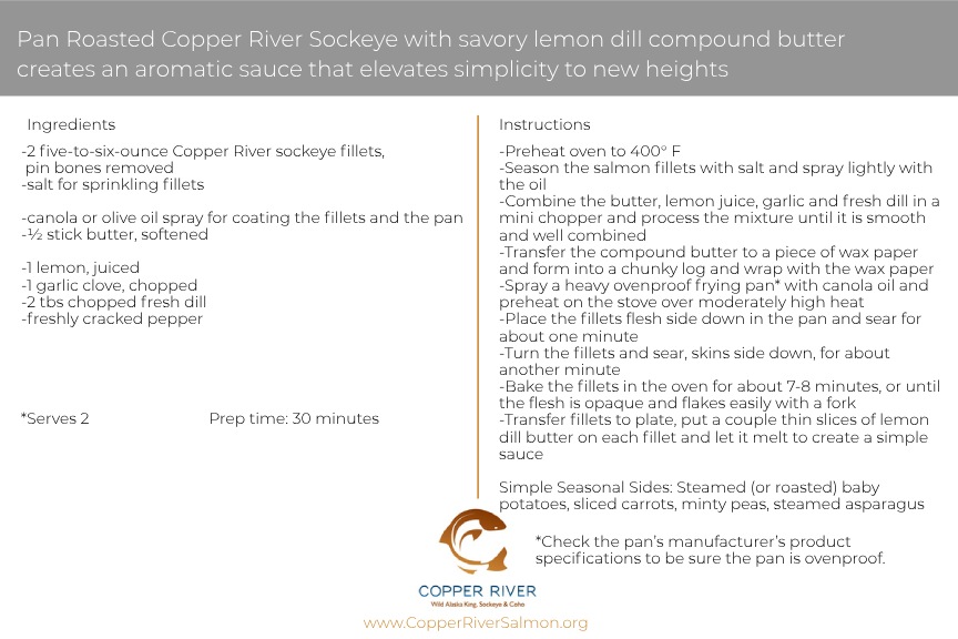 - 2 five-to six-ounce Copper River sockeye fillets, pin bones removed