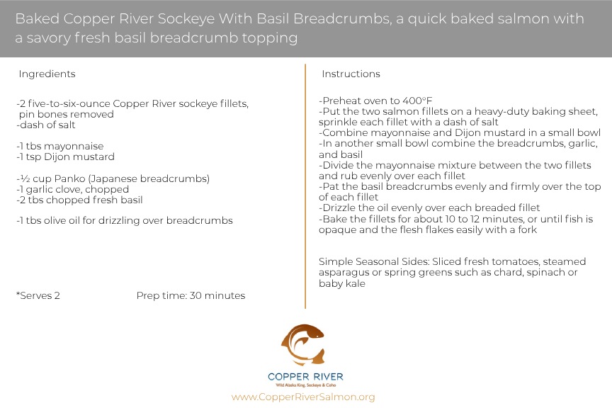 - 2 five-to-six-ounce fillets of Copper River sockeye, pin bones removed