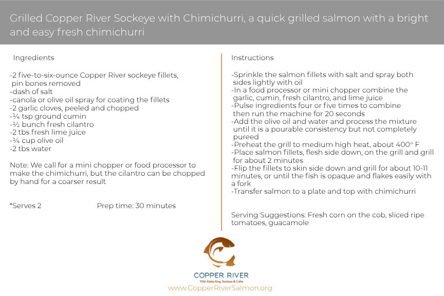 - 2 five- to six-ounce Copper River sockeye fillets, pin bones removed